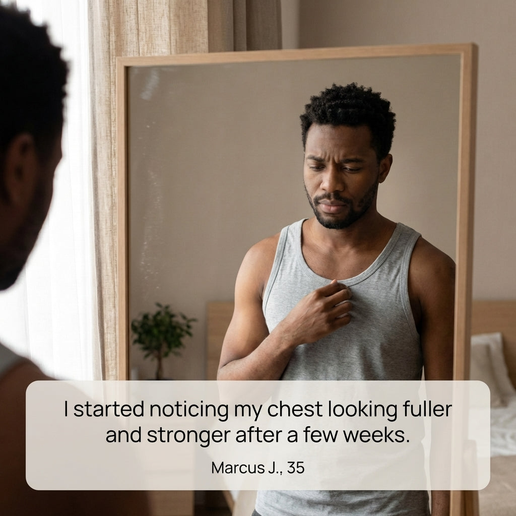 "I started noticing a stronger chest and better definition after a few weeks. It finally feels like my training is paying off."